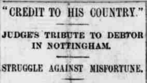 On his return, although still in poor health, he was keen to get back on his feet and applied to the County Court to be discharged from his bankruptcy. He wanted to use a Government grant to buy some land and set up a market gardening business, and offered to pay back some of his debt in monthly instalments[7]. Once again William found his story reported in the local newspapers, but this time they related his “struggle against misfortune” and quoted a glowing tribute from the judge: