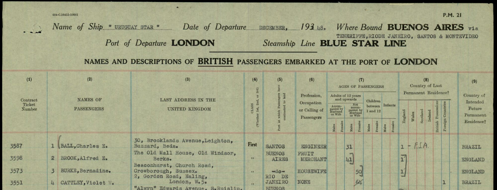 - Electoral Register, Middlesex, 1958, Uxbridge North division, Ickenham ward, entry for Charles Edward Ball; digital image, Ancestry (ancestry.co.uk). Cited for residence in Ickenham following return from Brazil.