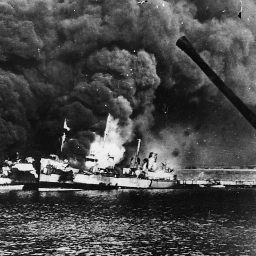 Seventeen Allied ships go up in flames after a German bombing raid in Bari